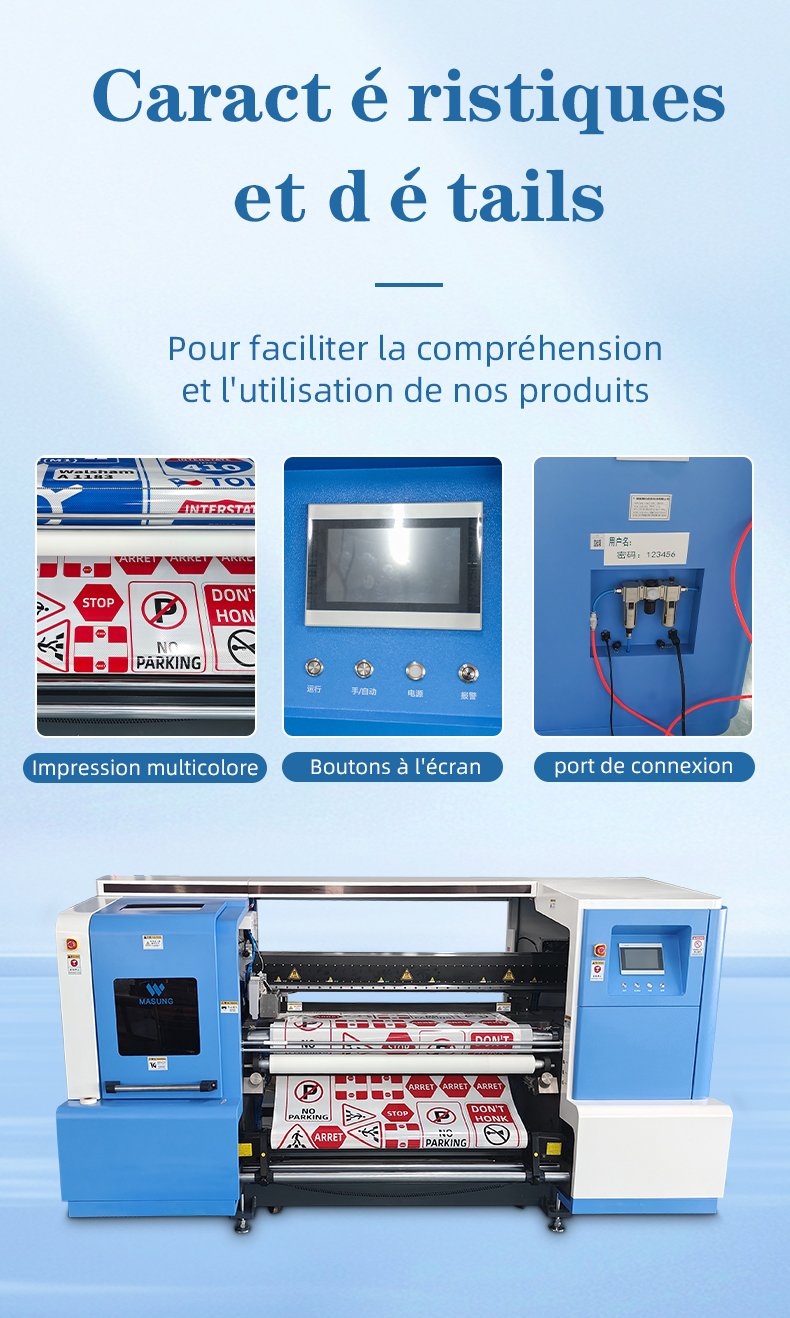 • Tête d’impression haute vitesse exclusive : Équipée d’une tête d’impression unique de 1,3 m de large, fonctionnant avec quatre couleurs simultanément, cette imprimante de panneaux de signalisation routière répond aux divers besoins d’impression de tous types de panneaux de signalisation routière.