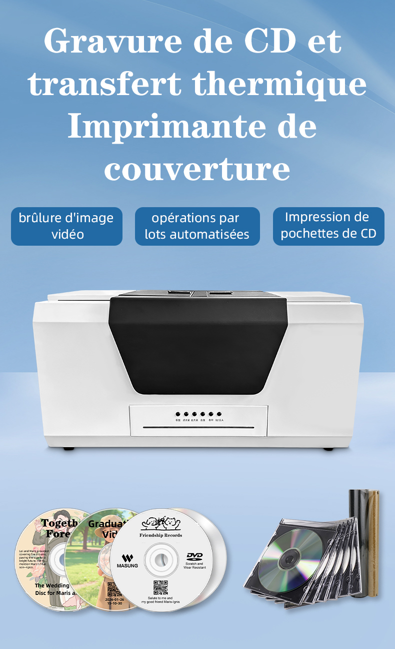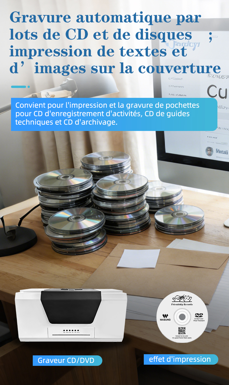 Le duplicateur de CD MS-550A offre une gravure et une impression de CD entièrement automatisées, ce qui le rend idéal pour la duplication en vrac de CD et DVD et l’impression de disques.