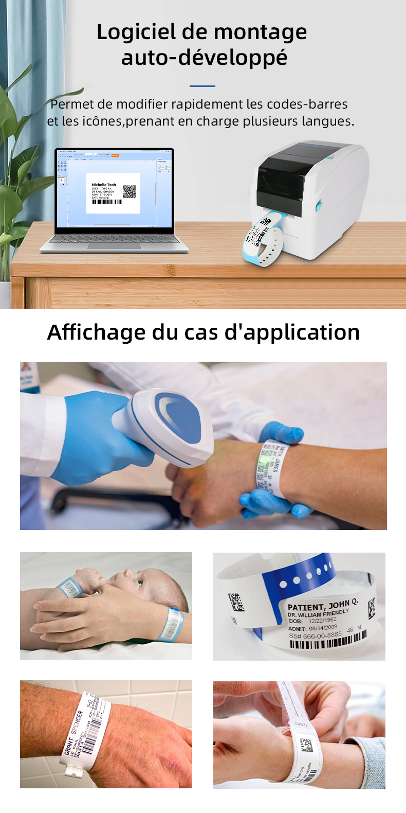 Imprimante de codes-barres pour bracelets polyvalente