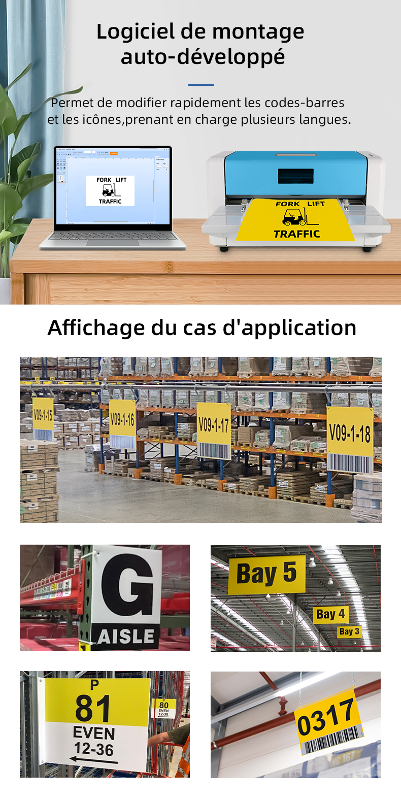 Le principal atout de cette imprimante d’étiquettes grand format réside dans sa polyvalence, avec une largeur de papier ajustable de 110 mm à 320 mm. Cette flexibilité, combinée à l’alimentation automatique et à une vitesse d’impression de 5 cm/s, lui permet de gérer rapidement diverses tâches d’étiquetage sans compromettre la qualité, optimisant ainsi la productivité.