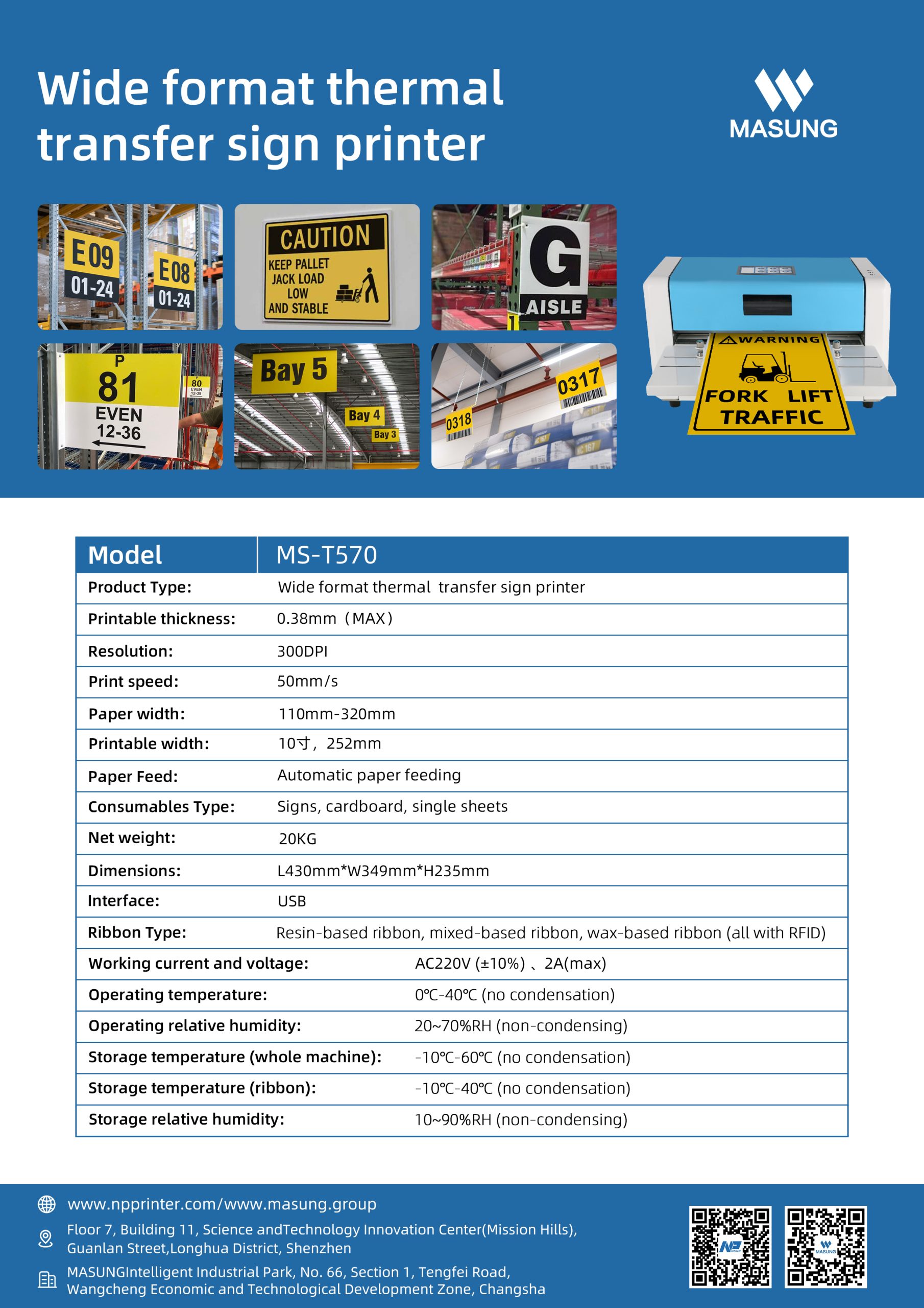 Built for durability, the MS-CH570 industrial sign and label printer is highly reliable and easy to maintain. Its sturdy, compact design (430 mm x 349 mm x 235 mm, 20 kg) ensures long-term robustness, making it a cost-effective solution for producing professional, permanent signs on demand.