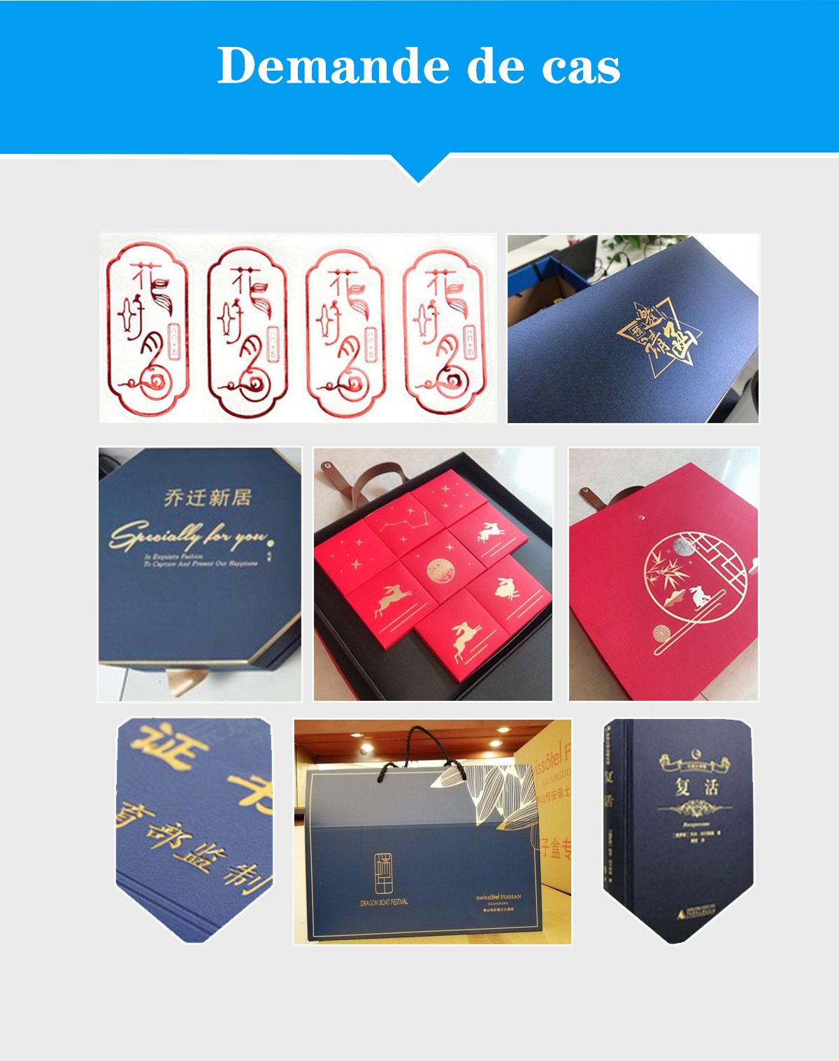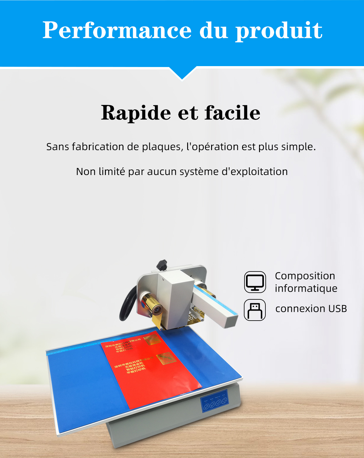 Les principaux avantages de cette machine d’estampage sans plaque résident dans le moulage en une seule étape et la possibilité de réutiliser certains matériaux, ce qui réduit considérablement les coûts d’exploitation. Grâce à la mise en page informatique directe et à la facilité de modification, cette machine d’impression à la feuille d’or rationalise la production, améliore l’efficacité et diminue les dépenses globales.
