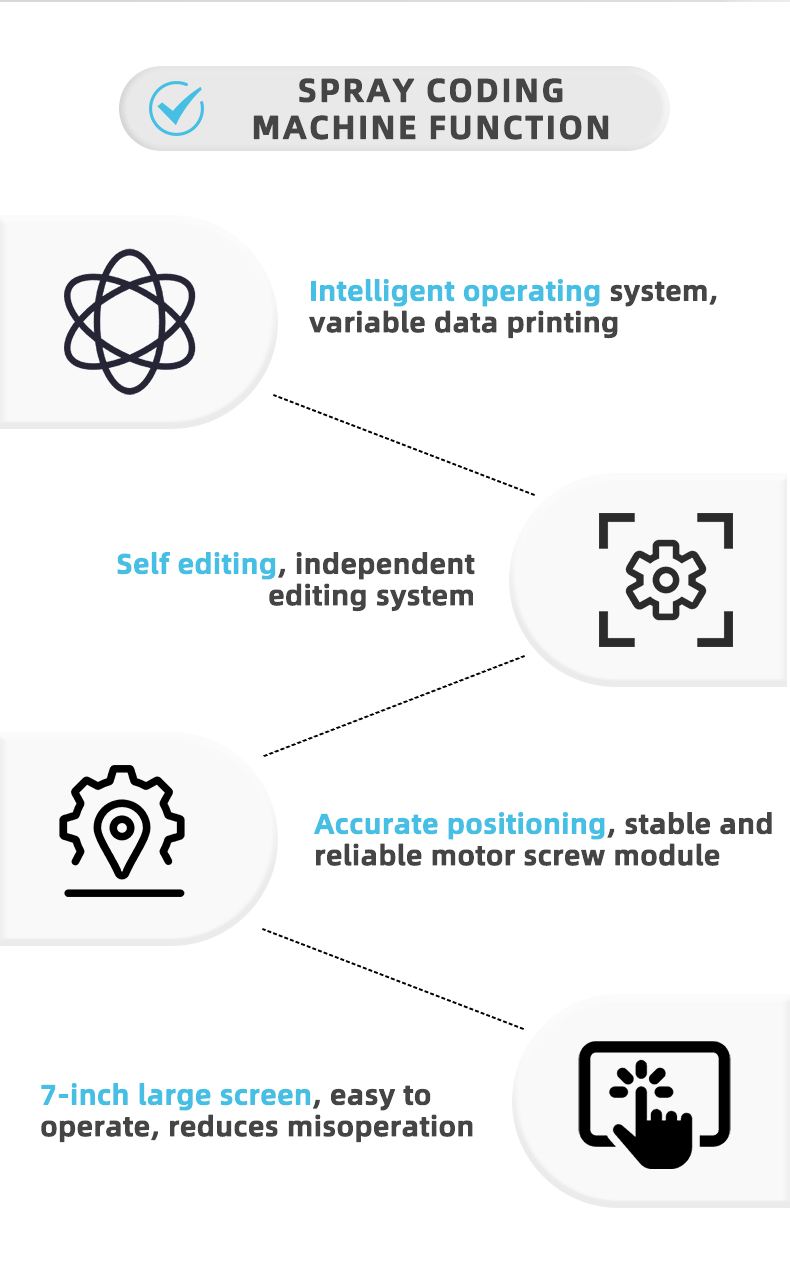 This expiry date code printer supports high-resolution output, allowing users to preset print quality up to 600 DPI for clear text and scannable codes. It maintains print consistency across various surfaces such as PVC, cowhide paper, plastic tubing, and foil. Accompanying software enables straightforward editing of content, including numbers, barcodes, and QR codes, simplifying the process of managing expiry dates and batch information.