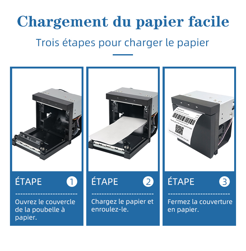 Conçue pour la fiabilité et la simplicité d’utilisation, cette imprimante de reçus pour bornes interactives est dotée de plusieurs mécanismes d’ouverture et d’un capteur photoélectrique réfléchissant pour une détection précise du papier et une maintenance aisée. Avec une vitesse d’impression élevée allant jusqu’à 250 mm/s, elle garantit des transactions rapides, un atout essentiel pour les terminaux destinés aux clients. Son système de chargement de papier facile et sa longue durée de vie mécanique de 100 km contribuent également à réduire les temps d’arrêt et les coûts d’exploitation.